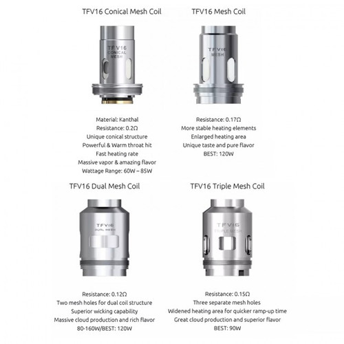 SMOK TFV16 Replacement Mesh Coils have three Coil types for you to choose. They are Mesh Coil 0.17ohm, Dual Mesh Coil 0.12ohm, Triple Mesh Coil 0.15ohm. The TFV16 Replacement Coil is designed for the powerful TFV16 tank. As you know, ceramic is a material with great stability and strong high-temperature resistance. It helps to get more exquisite atomization and keep the original flavor.